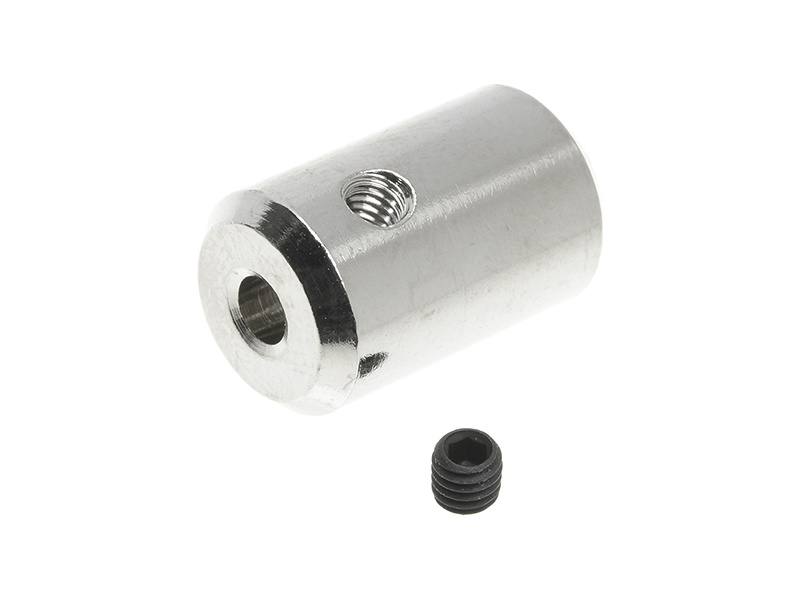 Spojka hřídelí HD, průměr otvoru na hřídel motoru je 3mm, jištěna červíkem M3. Z opačné strany je šestihran 5,5mm, celková délka je 16mm.