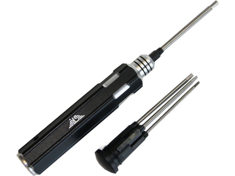 Šroubovák s výměnnými bity vyrobených z HSS oceli. Délka bitů 70 mm, délka dříku 59 mm, délka rukojeti 104 mm a průměr 19 mm. V balení kovová ručka a bity imbus 1.5 mm, 2.0 mm, 2.5 mm, 3.0 mm.