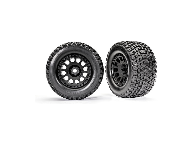 Traxxas kolo, disk Rally MT, pneu Gravix (pár). Nízkoprofilové pneumatiky 7,4" x 4,0" Gravix ™ se směrovým dezénem běhounu, tišší než u tradiční terénní pneumatiky, tuhá středová kostra proti vyboulení. Pěnová vložka. Pár (levý a pravý). Unašeč - šestihran 24 mm (drážkovaný). Kompletní nalepené.
