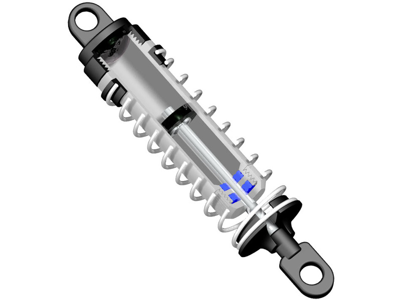 Olejové tlumiče Ultra Shocks mají exkluzivní X-kroužek pro snížení tření s vynikající odolností proti úniku oleje. Naplněním tlumiče silikonovým olejem jinou viskozitou můžete upravit účinnost tlumení. Předpětím pružin se ovlivňuje světlá výška.