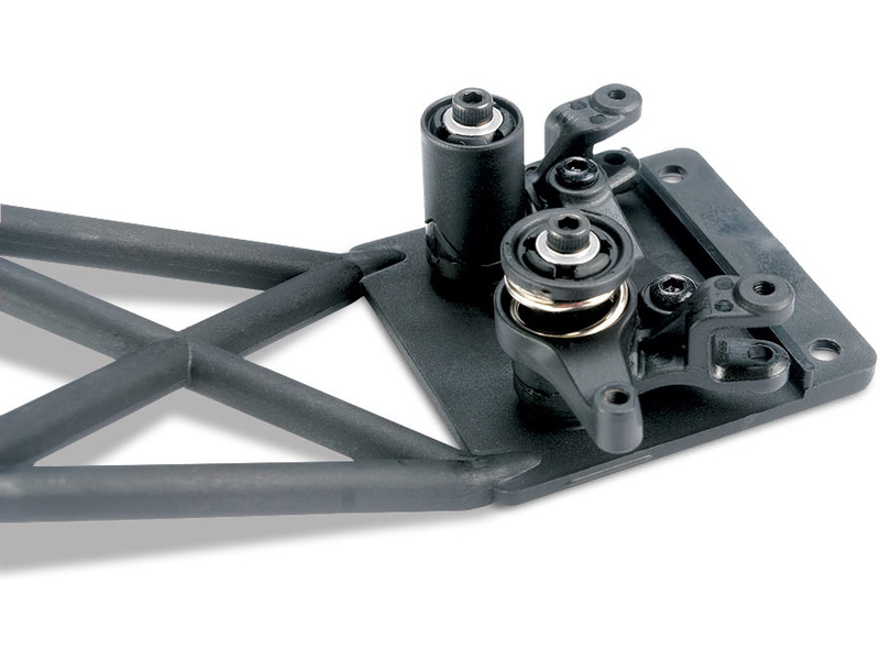 Nové šasi má speciální konstrukci, která umožňuje nižší uložení pohonného akumulátoru a motoru. Tuhost šasi je zajištěna osvědčenou prostorovou konstrukcí, která je lehká a zároveň pevná. Šasi je vyrobeno z kvalitního nylonu plněného uhlíkovými vlákny. Pneumatiky jsou na discích nalepeny, kvalitní pryžová směs pneumatik zajišťuje skvělou přilnavost na všech površích. Olejové velkoobjemové hliníko/teflonové tlumiče tlumiče GTR mají exkluzivní X-kroužek pro snížení tření s vynikající odolností proti úniku oleje, nízko položené těžiště dává autu skvělé jízdní vlastnosti.