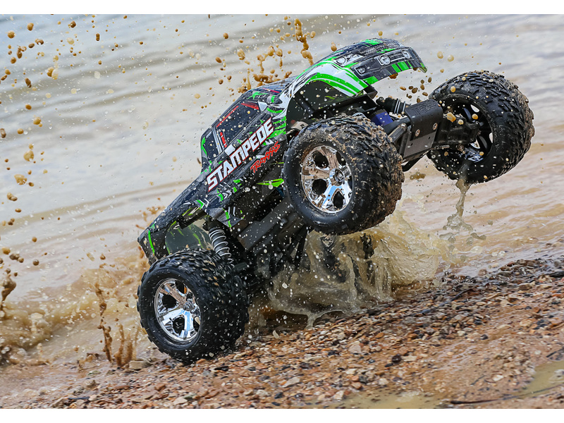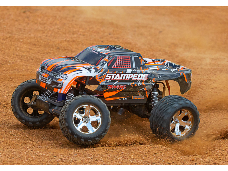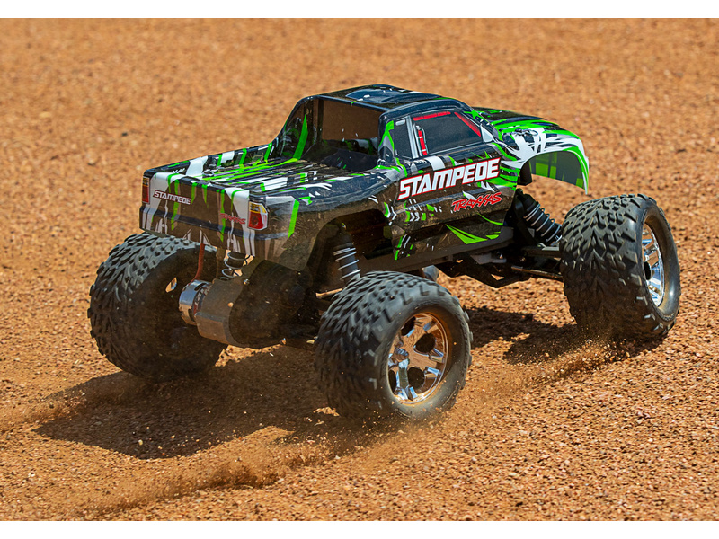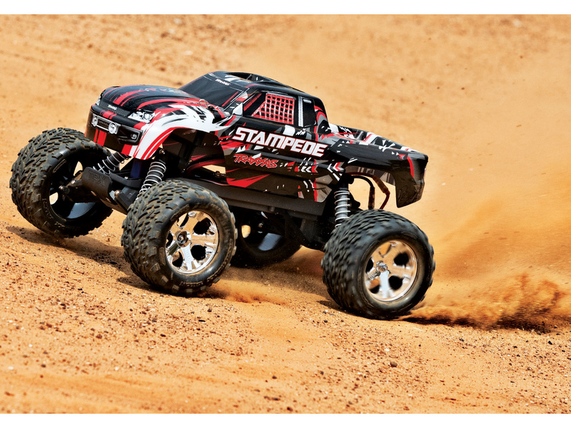 RC model auta Traxxas Stampede patří mezi nejoblíběnejší modely s náhonem 2WD od Traxxasu. Díky světlé výšce 100 mm se hodí do trávy i na rovné povrchy. Výhodou je prakticky bezúdržbový provoz. Model dosahuje rychlosti až 48 km/h, pro děti lze omezit rychlost na polovinu.