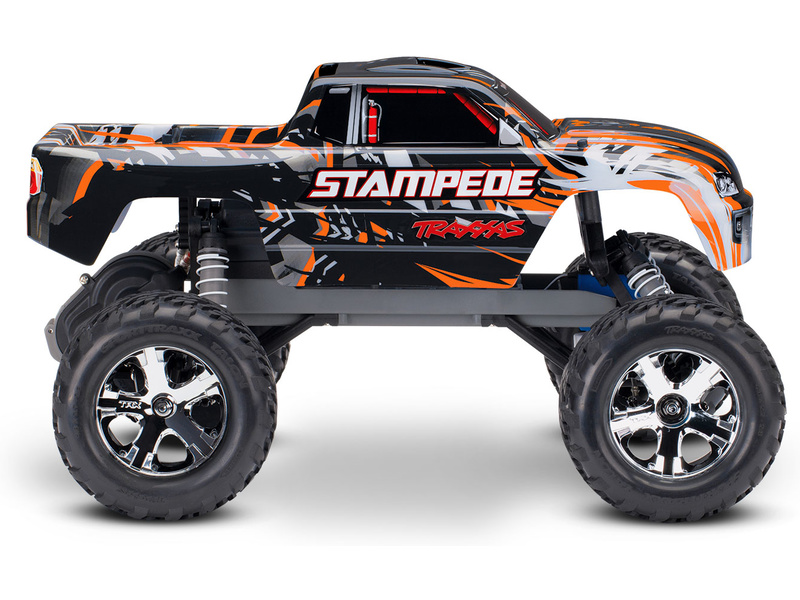 RC model auta Traxxas Stampede 1:10 na elektro pohon je je plně sestaven a připraven k jízdě. Pohání jej výkonný stejnosměrný motor Titan 550 12T, regulátor XL-5 s podporou LiPol akumulátorů.