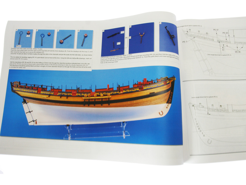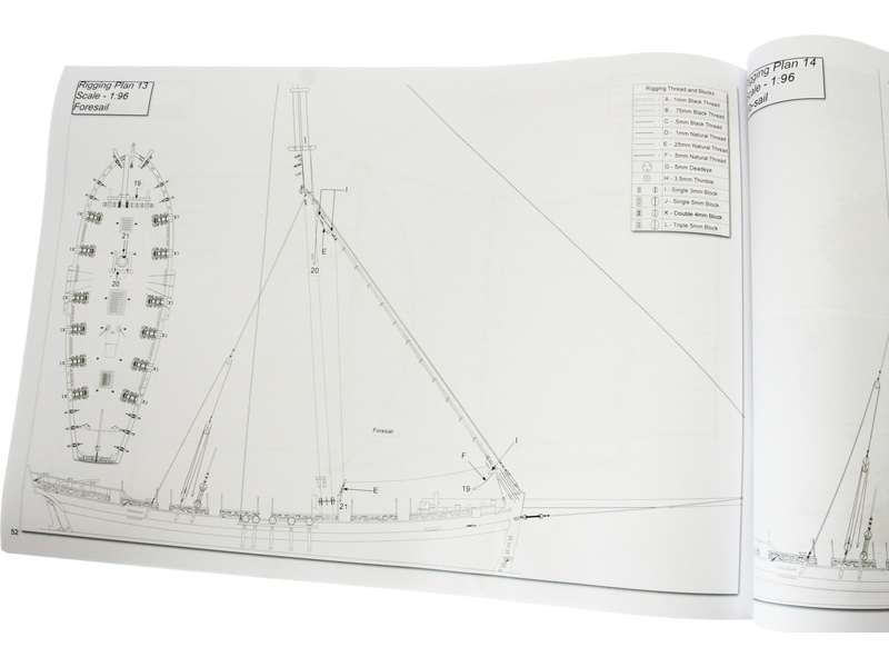 Set obsahuje kompletní sadu výkresové dokumentace modelu v měřítku 1:1 s obrázky jednotlivých detailů. Na výkrese jsou v měřítku nakresleny montážní sestavy, jejich kompletace a to včetně stěžňů a ráhen a způsob vázání lanoví. Vícejazyčný postup stavby rámcově upravuje logické sestavení jednotlivých komponentů.