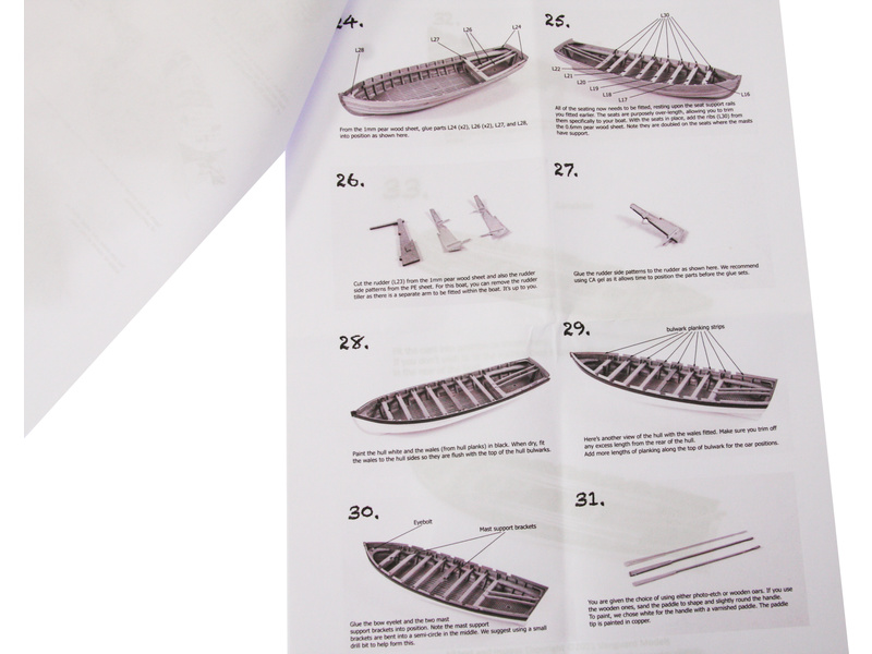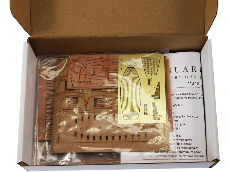 Stavebnice modelu lodi Vanguard Models - Launch člun v měřítku 1:64. Délka modelu lodi je 114mm, stavba převážně ze dřeva s drobnými doplňky, součástí je i stavební plán. Obrazový manuál krok za krokem.