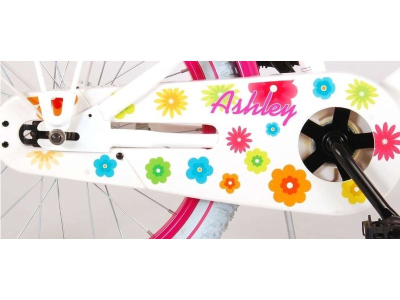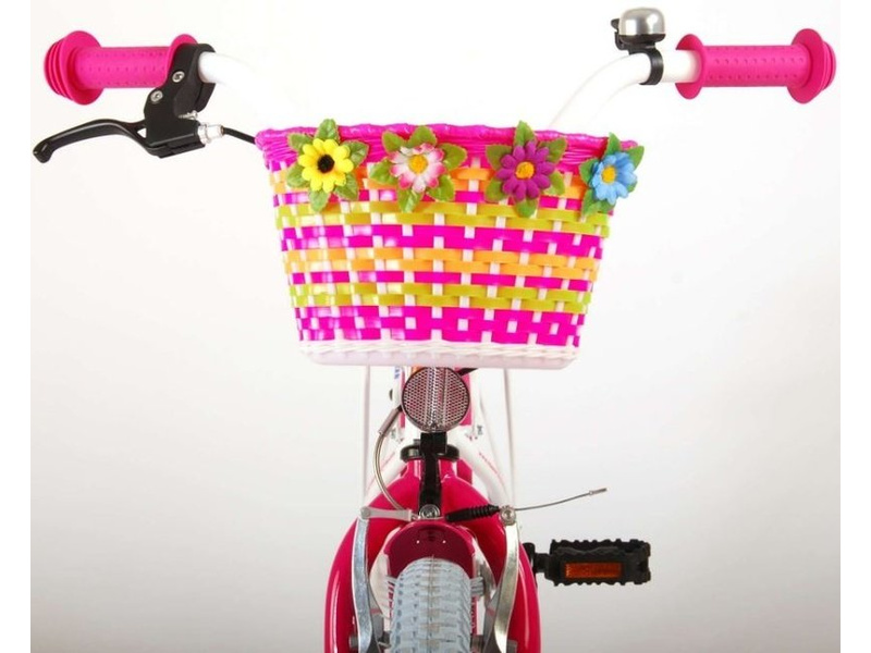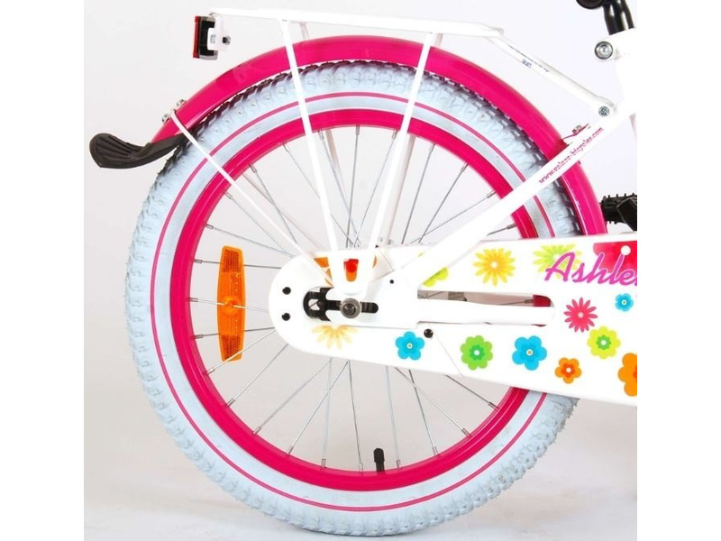 Stylové dívčí dětské kolo Volare 18" Ashley Fiets s praktickým zadním nosičem a předním košíkem. Účinná přední V-Brzda, zadní protišlapací (torpédo). Kryt řetězu. Stojánek. Zvonek. Pohodlné rukojeti. Doporučený věk a výška dítěte: 4-7 let, >110 cm.