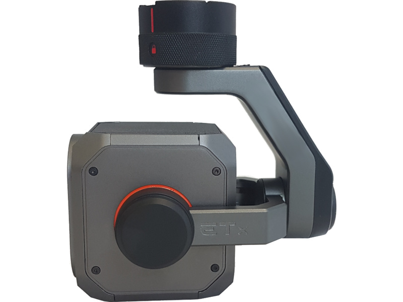 Duální kamera CGO-ETX pro dron Yuneec H520E, kombinuje dvě kamery do jedné. CGO-ETX obsahuje 2 kamery - termokameru pro měření teploty objektů a klasickou RGB kameru. Tato duální kamera je uložena na stabilizovaném 3-osém gimbalu s rotací +-165°. Termokamera selektivně měří teplotu povrchu a ukazuje relativní teplotní rozdíly. Druhá optická kamera dokáže pořídit vysoce kvalitní snímky a rozpoznat více detailů i při snížené viditelnosti.